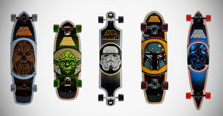 A marca Santa Cruz Skateboards sempre inova em seus shapes, já fizeram uma franchise dos Simpsons, mas agora chegou a hora de atacar o público nerd, tirar a gente de casa para aquele role. A Santa Cruz Skateboards criou a edição limitada Star Wars Skateboards. São cinco shapes com os personagens mais emblemáticos dos filmes. O conjunto inclui Stormtrooper, Darth Vader, Yoda, Chewbacca, e Bobba Fett.